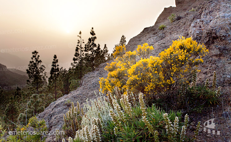Tamadaba con Tenerife al fondo Tejeda Santa María de Guía Barrio de El Toscón. Tejeda Herrerillo comiendo tunos Verodes Llanos de la Pez. Tejeda Monte Constantino, Tejeda Canario Tamadaba, Artenara Aguililla Campanario de la iglesia de Tejeda Retama y tajinaste con calima Presa de Las Niñas vista desde Inagua Pinar Almendros, Tejeda Morro de Los Cuervos Roque Nublo Tenerife vista desde Gran Canaria Anochecer en Inagua Búho chico